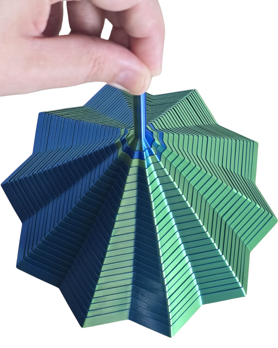 O Fidget Espiral Sensorial da Midnight Makers é um brinquedo impresso em 3D desenvolvido para criar um efeito visual hipnótico e relaxante quando girado.